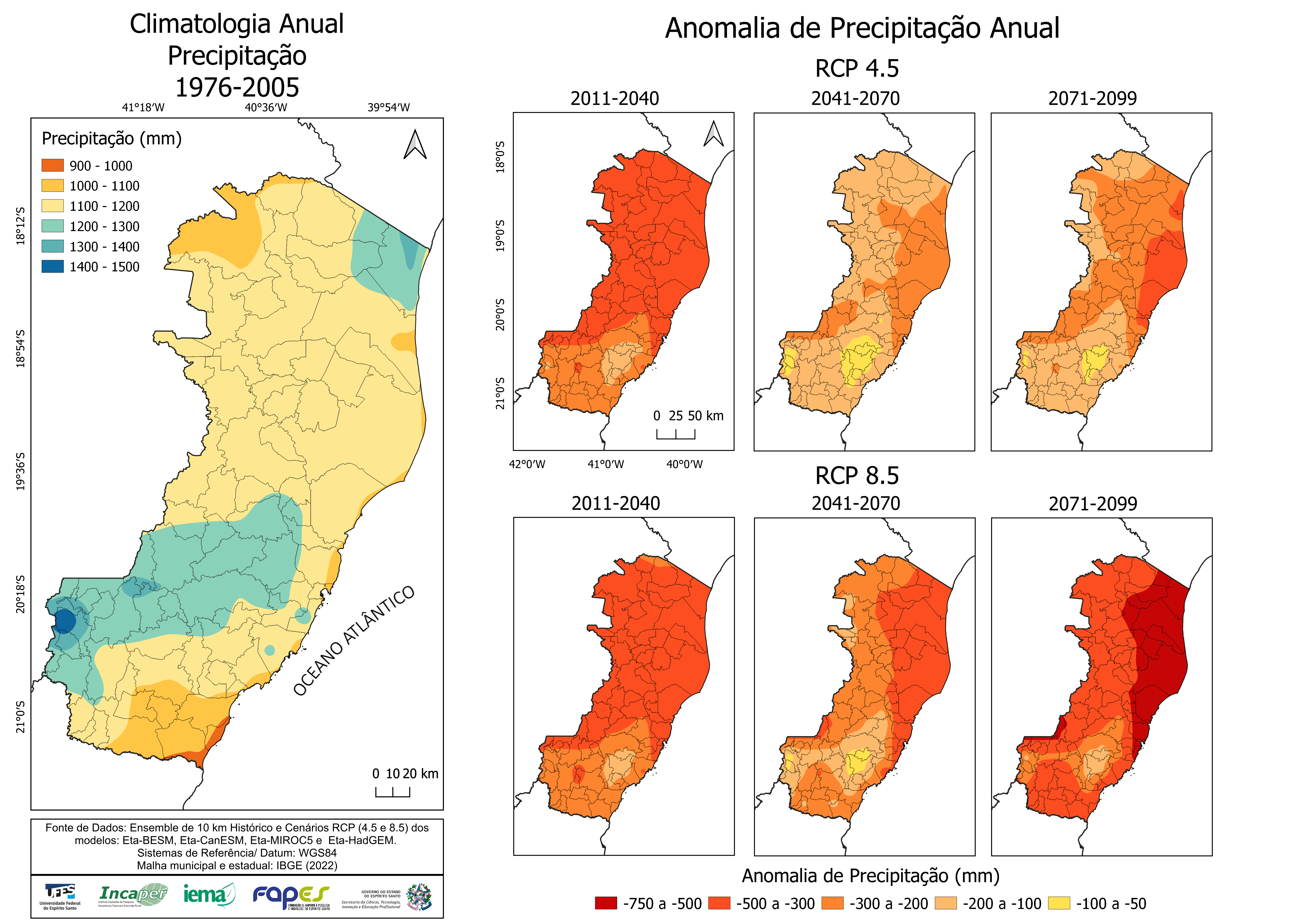 O objetivo do atlas é oferecer, por meio de um conjunto de mapas e gráficos, a distribuição espacial das variáveis climáticas no Espirito Santo ao longo dos anos (cenários futuros).